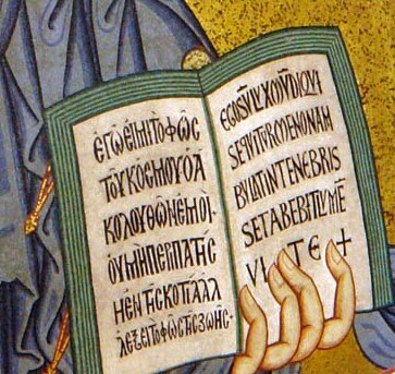 ἐγώ εἰμι τὸ φῶς τοῦ κόσμου• ὁ ἀκολουθῶν ἐμοὶ οὐ μὴ περιπατήσῃ ἐν τῇ σκοτίᾳ, ἀλλ̓ ἕξει τὸ φῶς τῆς ζωῆς.
