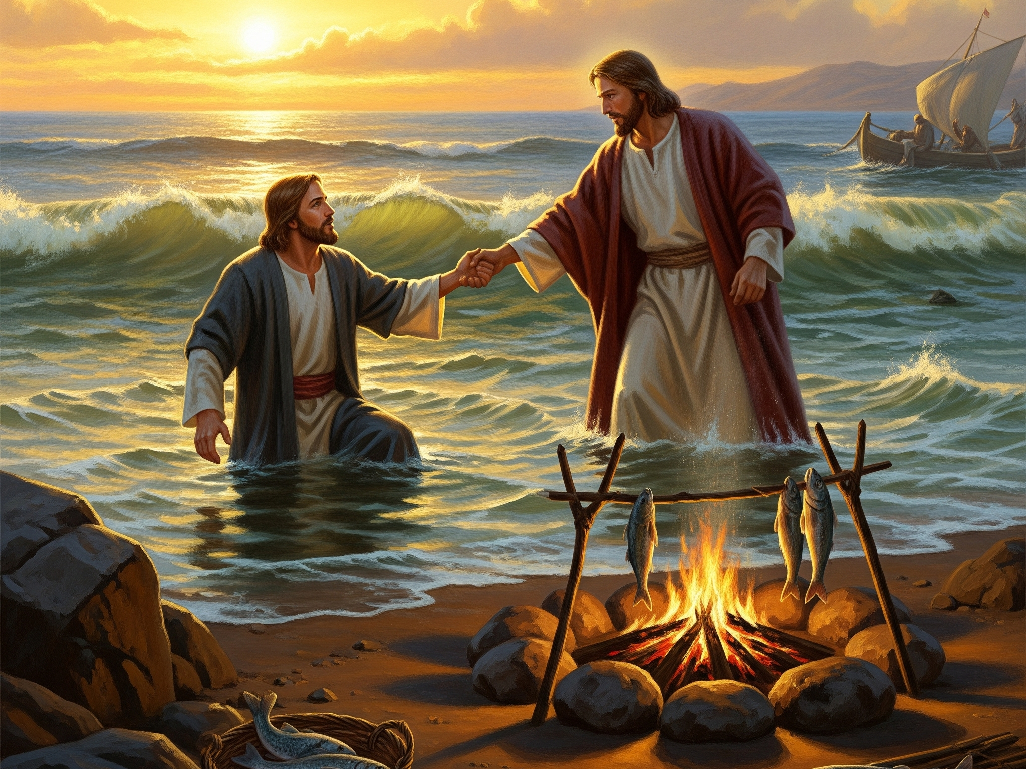 The Lord reconciles with Peter and commissions him to leadership. He entrusts Cephas to care over His flock. The one who failed becomes the one who feeds. The season of separation and grief ends with renewed commitment to love. The time to strengthen the brethren has begun. Peter begins the day by leading the disciples out to catch fish, going forward he will lead them to catch men.